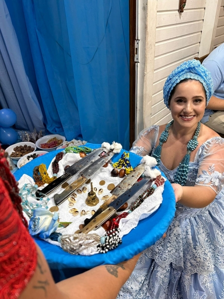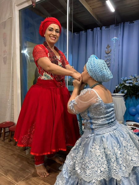 Festa em homenagem aprontamento de filha de santo de Iemanja